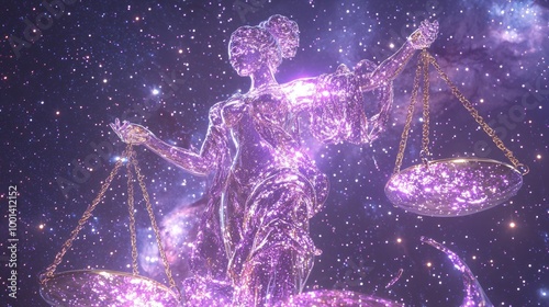 Fototapeta premium Celestial Quest - Libra, the Cosmic Explorer, Journeying Through a Glowing...