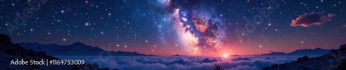 © Kathy, Naklejka premium Celestial scene with many stars in a vast landscape, celestial, hills