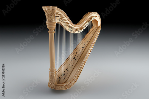 © chok, Obraz premium Celestial shadow play. celestial harp floating in void, its strings creating harmony