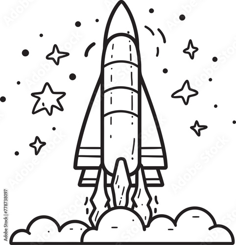 © BABBAN, Fototapeta premium Celestial Soar Space Rocket Lineart Icon Stellar Thrust Rocket Logo Vector Graphic