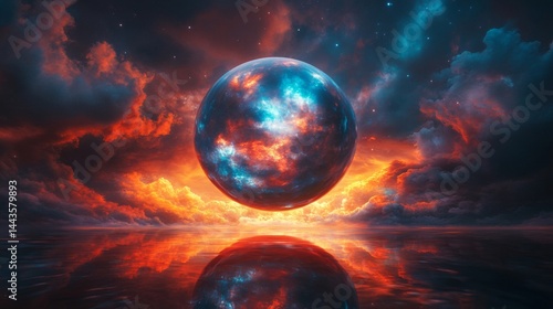 © Suprapti, Obraz premium Celestial Sphere Reflecting in Fiery Waterscape