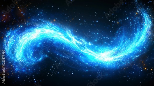 Obraz premium Celestial Swirl Glowing Blue Nebula in Dark Space Cosmic Energy Abstract...