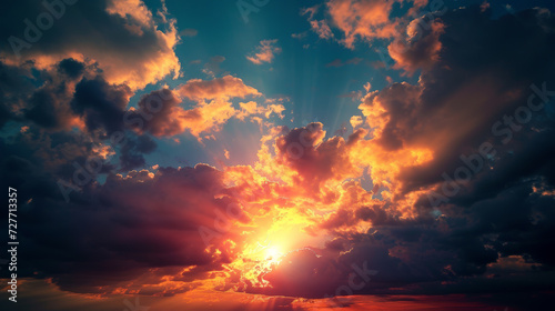 © Sascha, Obraz premium Celestial Symphony: A Sunset Tapestry. Generative AI