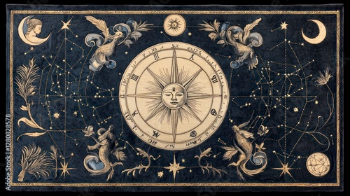 Naklejka premium Celestial Tapestry Zodiac Constellations Astrology Astronomy Antique Art...