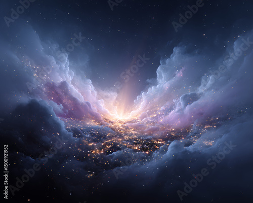 © VISA-3UK, Obraz premium Celestial View of Cosmic Clouds and Stars in Night Sky