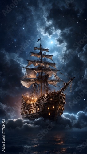 Fototapeta premium Celestial Voyage: A Ship Sailing the Starry Seas of the Night Sky