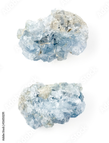 Obraz premium Celestine blue crystals on white background.