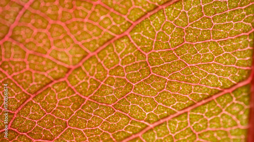 © Olha, Obraz premium Cell Structure View of Leaf Surface Showing Plant Cells For Education. Leaf in Macro Shot Background. Bright Orange Leaves of Plant or Tree With Texture and Pattern Close Up