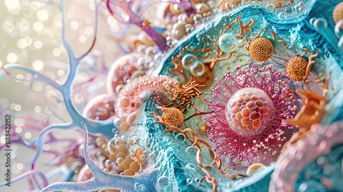 © Gams Images & Videos, Naklejka premium cell with nucleus, mitochondria and ribosomes, light colors