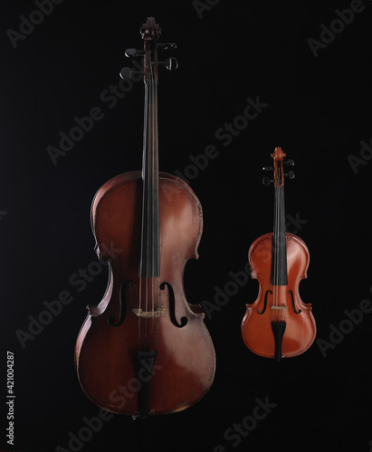Fototapeta premium cello and violin on a black background