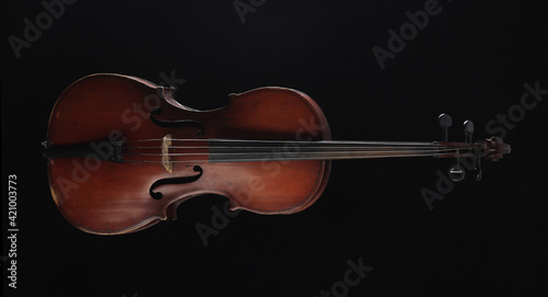 © serikbaib, Fototapeta premium cello isolated on black background
