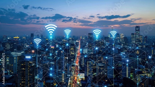 Fototapeta premium Cellular Network: A communication system where the final link is wireless, enabling mobile devices to access the internet and make calls.