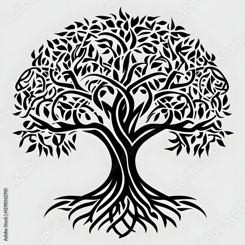 Obraz premium Celtic Tree of Life Vector Artwork, Black and White Design, Solid Background
