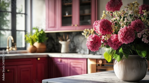 © vectorwin, Fototapeta premium centerpiece kitchen with flowers