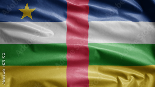 Naklejka premium Central African flag waving in the wind. Close up of Central Africa banner