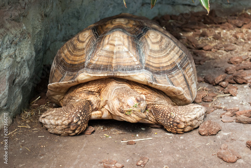 Obraz premium Central Asian large adult turtle alone on the stones