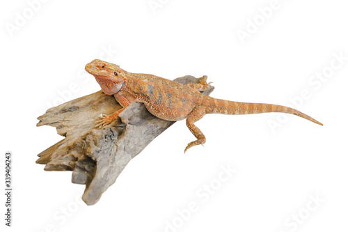 Fototapeta premium Central bearded dragon on wood isolated on a white background with clipping path