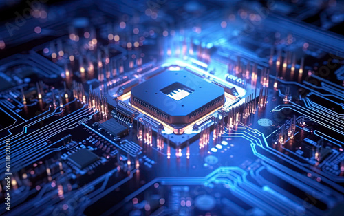 © Elena Uve, Obraz premium Central Computer Processors CPU 3D design concept. Generative AI.