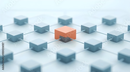 Obraz premium Central orange cube connected in digital network grid