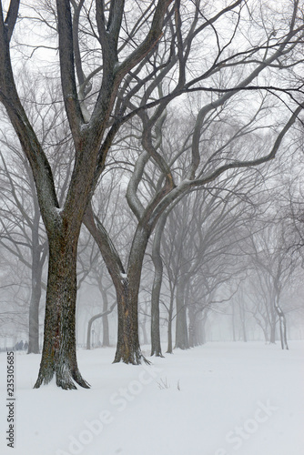 Fototapeta premium Central Park in Manhattan New York during middle of snowstorm with snow falling