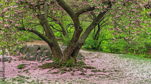© John Anderson, Fototapeta premium Central Park in spring, blooming cherry tree