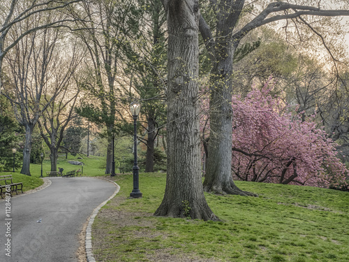 Obraz premium Central Park, New York City with Japanese Cherry trees