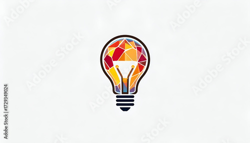 © Lashan, Fototapeta premium Central Polygonal Lightbulb Icon Glowing with Colorful Idea