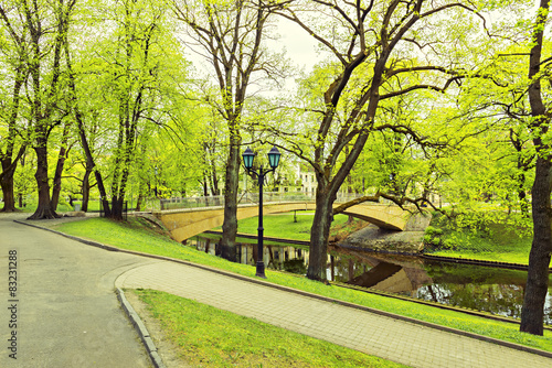 Fototapeta premium Central public park in Riga by spring, Latvia