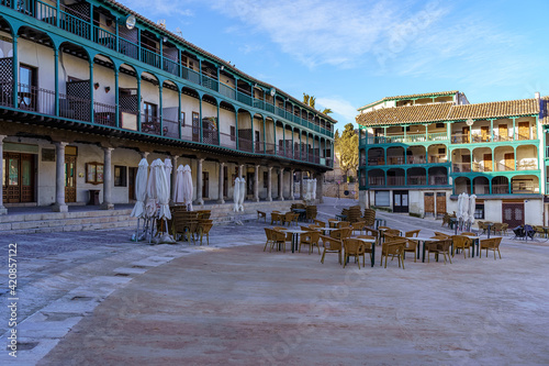 Obraz premium Central square of the town of Chinchon in Madrid, typical houses with wooden...