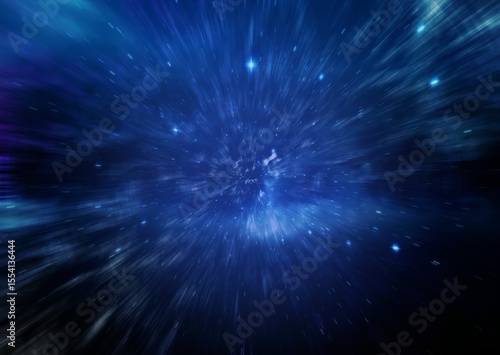 Fototapeta premium Central starburst is radiating radial light trails and glowing nebulae in...