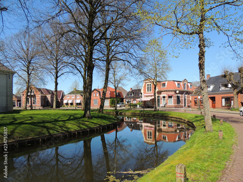 © Zanoza-Ru, Fototapeta premium Central street in town Spijk, Dutch province Groningen, Netherlands