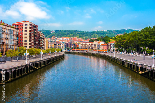 Obraz premium Centrum miasta Bilbao z rzeką Nevion