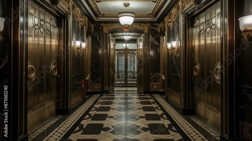© vectorwin, Fototapeta premium century interior elevator vintage