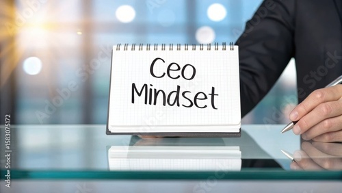 © supaporn, Naklejka premium CEO in Training A business professional holds a notepad with "CEO Mindset" written on it, symbolizing leadership and success.