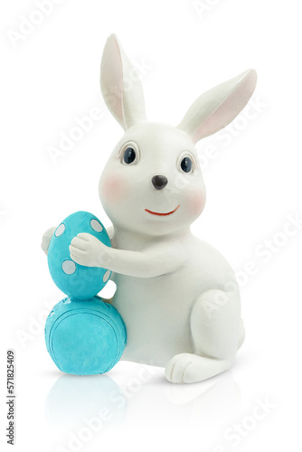 © Tania, Obraz premium Ceramic Easter bunny with blue eggs