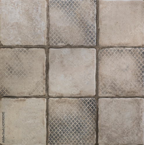 © serikbaib, Naklejka premium ceramic kitchen tile for floor, vintage abstract geometric mosaic pattern