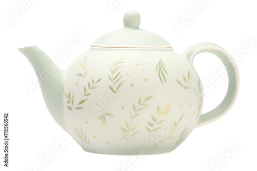© Rita Paulina Kłysik, Obraz premium Ceramic teapot with botanical pattern isolated on transparent background.