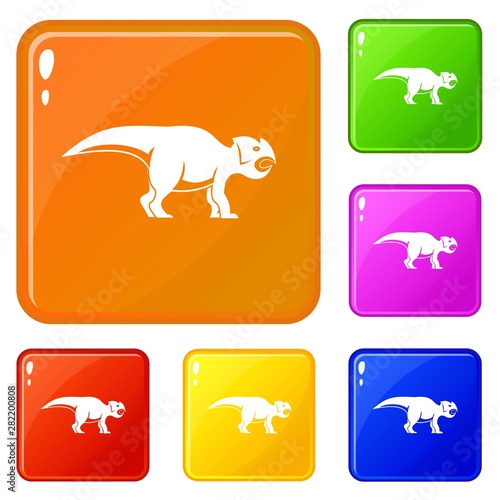 © ylivdesign, Fototapeta premium Ceratopsians dinosaur icons set collection vector 6 color isolated on white background
