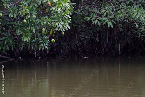 Naklejka premium Cerbera odollam (Suicide tree, Pong-pong, Othalanga) fruit on tree.