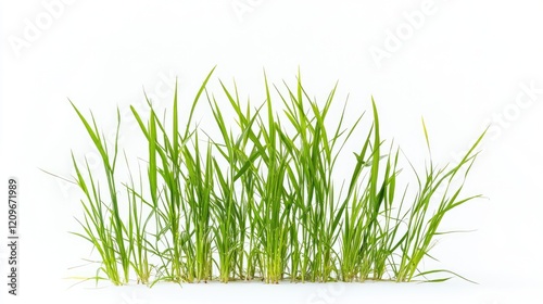 © ArtificialHorizons, Obraz premium Cereal rye grass isolated on white background showcasing vibrant green color and texture for agricultural or natural food themes.