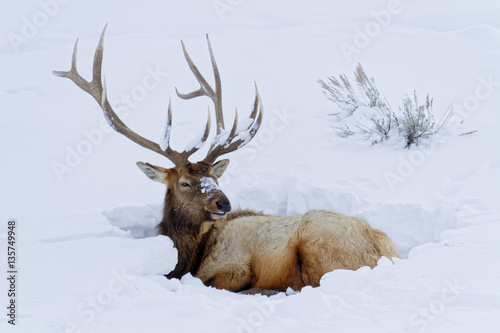 © Pierre-Jean DURIEU, Naklejka premium Cerf couché dans la neige, Parc de Yellowstone