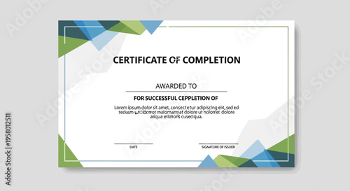 Fototapeta premium Certificate of completion template with geometric design