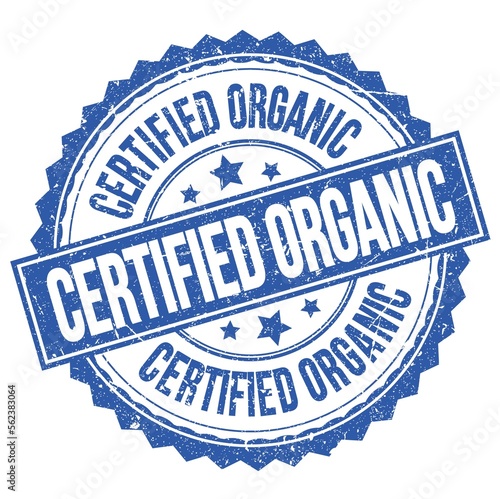 Fototapeta premium CERTIFIED ORGANIC text on blue round stamp sign
