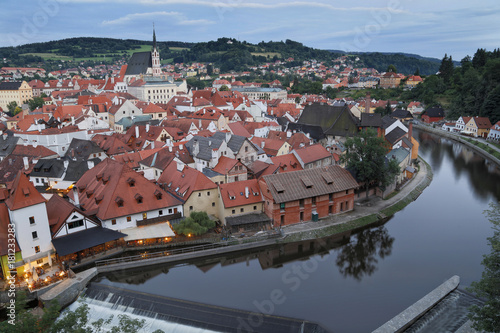 Obraz premium Cesky Krumlov at dusk, South Bohemia, Czech Republic