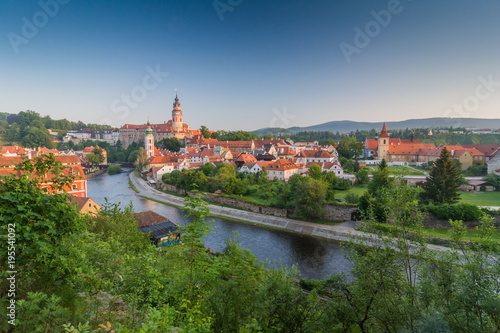 Fototapeta premium Cesky Krumlov castle and Vltava river view in the morning, in Summer time