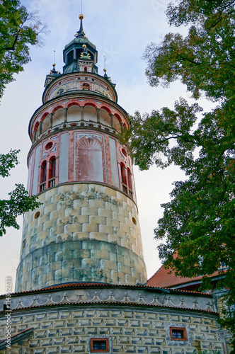 © sarmoho, Obraz premium Cesky krumlov tower during sunset