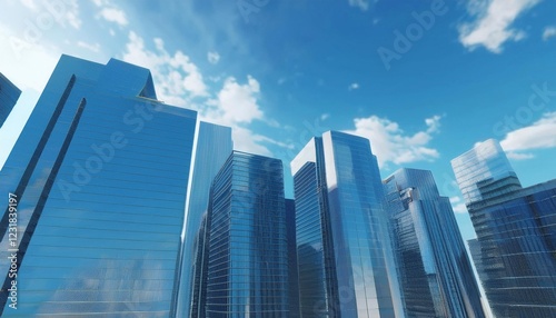 Obraz premium テレビ会議 背景用 CG オフィス外観 都市 高層ビル cityscape video conferencing background