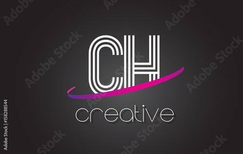 Naklejka premium CH C H Letter Logo with Lines Design And Purple Swoosh.