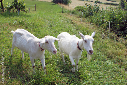 © CURIOS, Obraz premium Chèvres blanche dans le pré