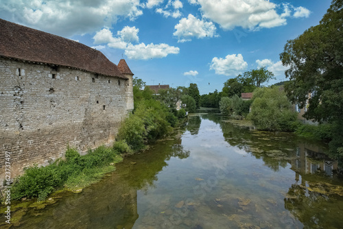 Fototapeta premium Chablis, small city in Burgundy, typical houses on the river